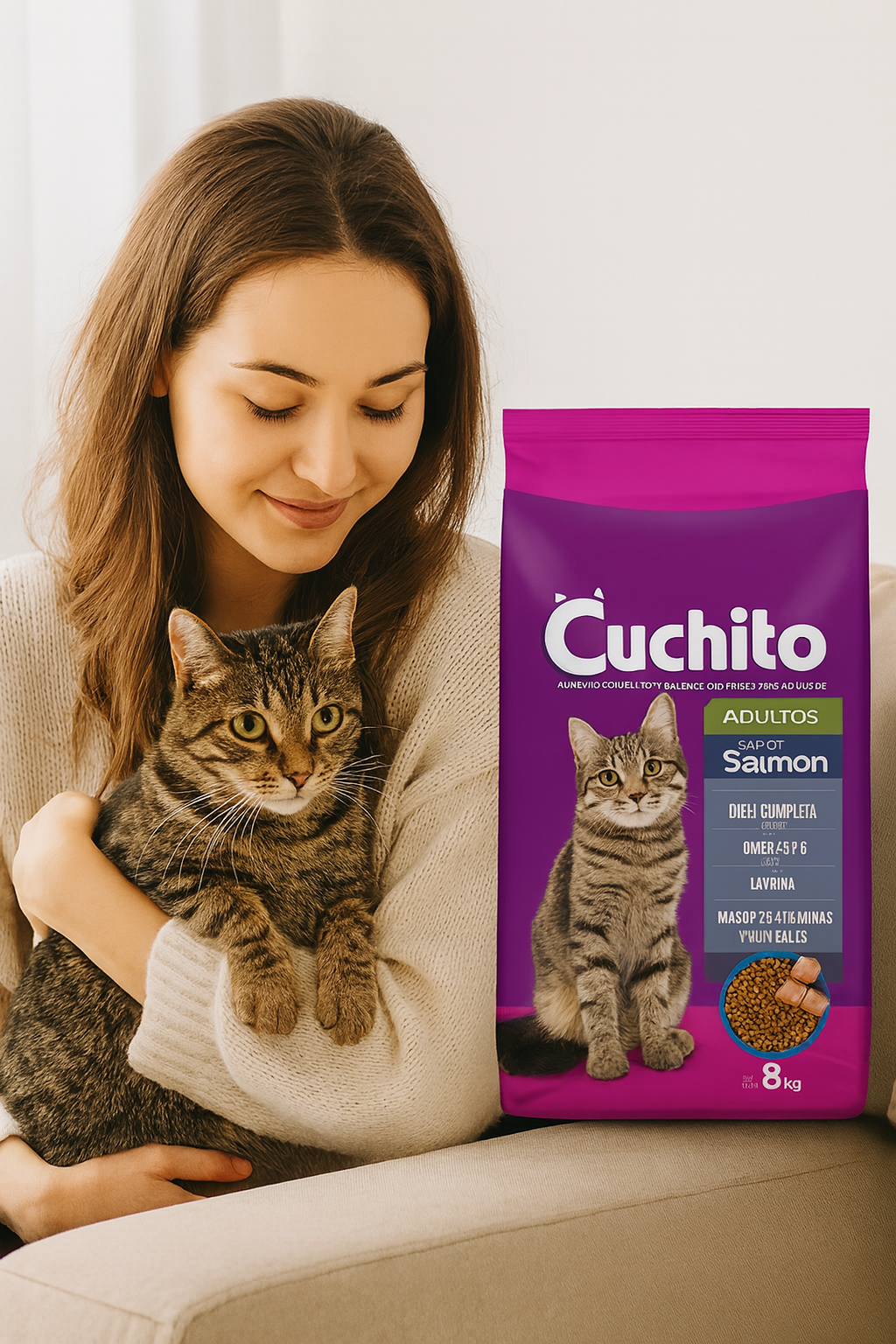 Maíz; Salvado de trigo; Harina de carne y hueso bovino; Harina de soya; Harina de plumas hidrolizada; Grasa de aves de corral y/o vegetal; Harina de pescado; Vitaminas y minerales (Vitaminas: Colina; E; B3; B2; B5; B1; A; B6; B12; K3; Ácido Fólico; D3; H; Minerales: Potasio; Zinc; Hierro; Cobre; Yodo; Selenio); Cloruro de sodio; Colorantes autorizados; Bentonita y/o zeolita; Preservantes; Aceite de pescado desodorizado (fuente deomega-3); Taurina; Metionina; Triptofano.
